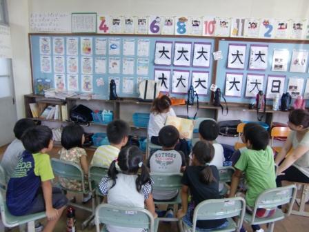併せて、保護者の方々による読み聞かせ活動が行われました。各学年から1~2名の保護者の方々が子どもたちに読み聞かせをしました。子どもたちも熱心に聞き、読み聞かせを楽しんでいました。