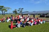 地震発生の放送から児童は真剣に取り組み、運動場に1次避難をし、津波が想定されるため2次避難として新たな避難場所へ移動しました。移動の際も無言で素早く行動し、10分以内で全校児童が避難場所に移動できました。