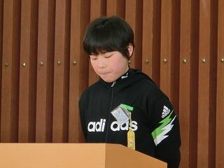 代表児童2名が、3学期の目標や新年の抱負を発表しました。