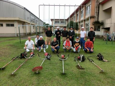 5月24日(日)の津波を想定した避難訓練で使う堤防を中心に学校内まで、せんだん会(父親の会)が草刈りをしてくださいました。5月22日(金)交通教室