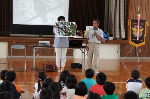 北方小学校は愛鳥モデル校に指定されており、毎年、愛鳥委員会が主体となって愛鳥集会を実施しています。今年の集会には、日本野鳥の会会員である井手保宏様に、北方地区の鳥、特にアオバズクについて講話をしていただきました。アオバズクに関するくわしい話を聞くことができて、野鳥に対して関心が高くなりました。学校保健委員会