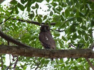 5月21日に子どもたちが学校の木「せんだん」につがいのアオバズクを見付けました。子どもたちは、アオバズクが毎年5月の下旬ぐらいに本校に帰ってくるのを知っているので、様子を見ていたようです。