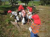 北神社では、児童は一生懸命に秋を感じる落ち葉や木の実などを見つけていました。この日集めた「秋」を使って、発想豊かな「秋の作品」を作成してくれることと思います。