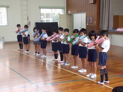 月1回音楽集会を実施しています。今回は、11/21の市音楽大会に出場する3・4年生が、日頃の練習の成果をいかんなく発表しました。まずもって演奏する前の姿勢がとてもよかったです。「おしえて」の斉唱では、振りを付けながら目を大きく開けて、一生懸命に歌っていました。さらに「情熱大陸」の合奏では、曲のイメージに合わせて強弱をつけたり、なめらかに演奏したりしていました。