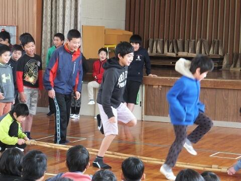2月17日になわとび大会を開きました。1月の中旬から練習してきたなわとびの成果を発表しあいました。短縄では、自分のできるようになった技を長い時間やたくさんの回数跳ぶことができました。高学年では、二重跳びやはやぶさ跳びができる児童も多く見られました。