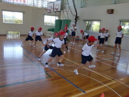 全校児童がそろい、団技や徒走、リレーなどを、けがもなく実施できました。