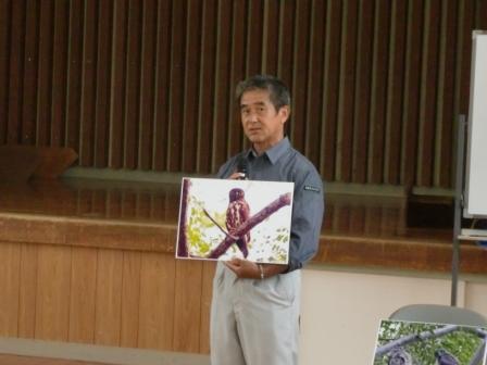 6月27日(火)に全校で愛鳥集会を開きました。北方小学校は、県の愛鳥モデル校になっています。愛鳥集会では、日本野鳥の会の井手保宏さんを招いて、鳥の話などをしていただきました。毎年アオバズクが飛来してせんだんの木にとまっています。今年は残念ながらアオバズクは来ていませんが、井手さんからなぜアオバズクが飛来しなかったのかについても話していただきました。鳥の生態など学習するよい機会となりました。