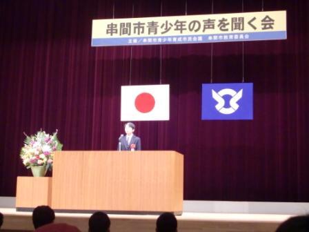 串間市文化会館大ホールで、青少年の声を聞く会が行われました。市内19名の小中高校生が、将来の夢や地域に対して思うことなどを、精一杯、力強く発表しました。