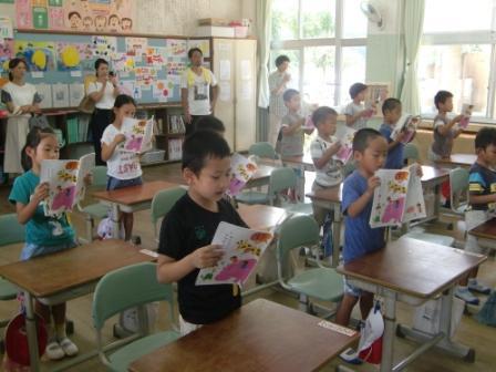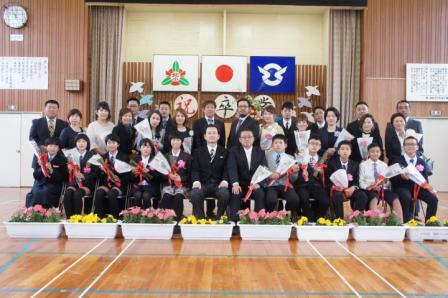 14名のかわいい新入生が入学してきました。式で名前を呼ばれるとみんな元気に返事ができました。また、校長先生のお話などを行儀よく聞くことができました。校長先生から一人一人教科書が渡されて、うれしそうな1年生でした。