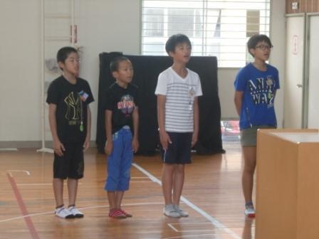 全校児童73名がそろう中、2学期の終業式を行いました。3名の代表児童が、2学期の反省や3学期・来年がんばることをスピーチしました。