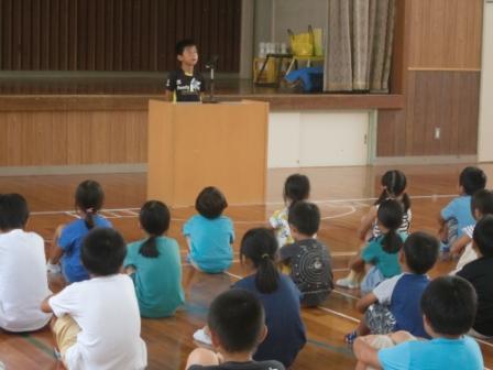7月21日(金)に、1学期の終業式がありました。北方小学校の児童は1学期間みんな元気に登校し、安全に過ごすことができました。終業式では、1学期にがんばったことを3人の代表の人たちが堂々と発表することができました。楽しい夏休みに向けて、1つの区切りを付ける終業式でした。