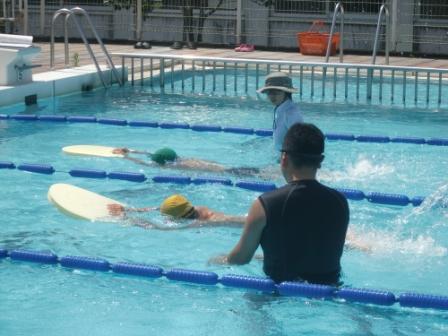 夏休みに入ってすぐの月曜日と火曜日に、とびっこ水泳教室が開かれました。泳ぎが苦手な児童を対象として、水泳教室がありました。3・4年生の子どもたちを対象に1~4年生の先生達でクロールなどの泳ぎを練習しました。1学期の水泳の時間では25メートル泳げなかった子も見事に25メートル泳げるようになるなど2日間でしたが、充実した水泳教室となりました。