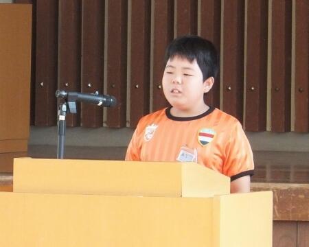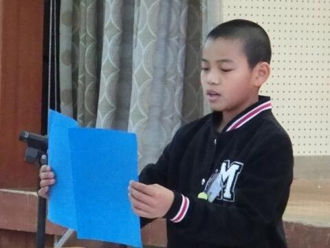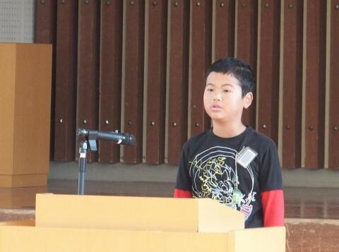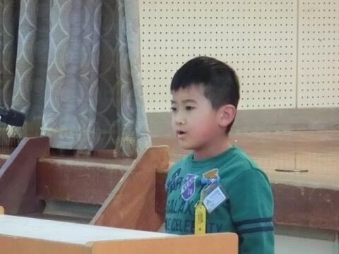 全校児童73名がそろう中、2学期の終業式を行いました。3名の代表児童が、2学期の反省や3学期・来年がんばることをスピーチしました。