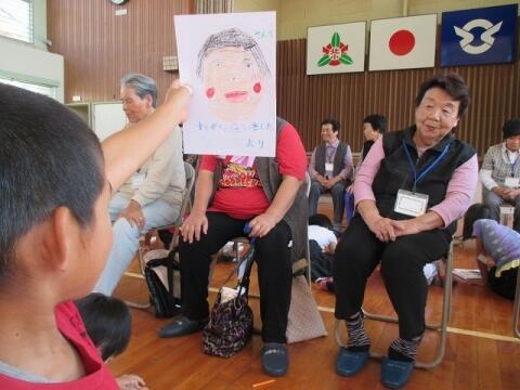 生活科の学習の一環として、1・2年生と地域の高齢者との交流「せんだん祭り」を行いました。今年も、29名という多数の高齢者の方々が来てくださいました。昔の遊び(お手玉、あやとり、こま、おはじき、ビー玉、竹馬)を教えていただきながら高齢者との交流を深めました。最後に、子どもたちがおじいちゃんやおばあちゃんの顔を描いてプレゼントしました。ご協力、本当にありがとうございました。