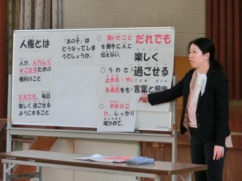 北方小学校では、世界人権デー(12月10日)を含む12月を「ハートフル月間」としています。人権について意識し、みんなが過ごしやすい学校や社会を作っていくために考えて行きたいと思います。人権集会では、身近な「人権」ということで、絵本を使って「うわさ」について考えました。