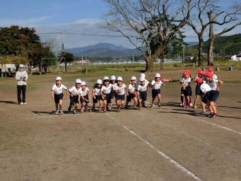 全校児童がそろい、団技や徒走、リレーなどを、けがもなく実施できました。