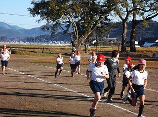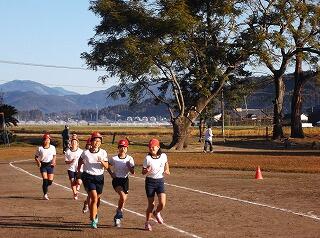 風が少し強かったですが、いい天気の下、低中高学年ごとに持久走記録会を実施しました。