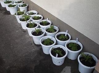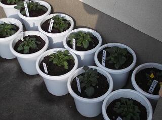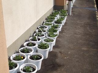 花の世話を通して、いたわりの心の育成や植物の生長の学習、そして、6年生の卒業式を花いっぱいすることを目的に、一人一鉢に毎年取り組んでいます。