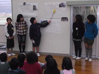 5年生が「くしま学」で調べたことや調べたことをもとにして考えたゆるキャラを発表しました。