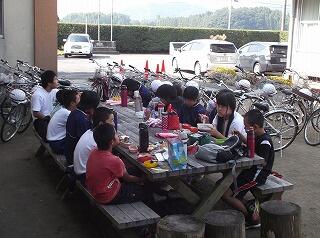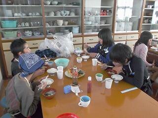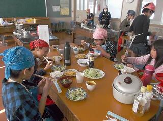 自分たちで作ったご飯と味噌汁などをおいしく味わいながら、楽しそうに調理を振り返っていました。