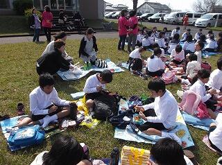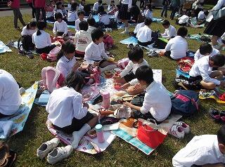 今年は、出発前に6年生の代表の「がんばるぞ」のかけ声に合わせて、全員で気合いを入れました。そして、最後に、児童全員で一本締めをして、お互いの頑張りを讃え合いました
