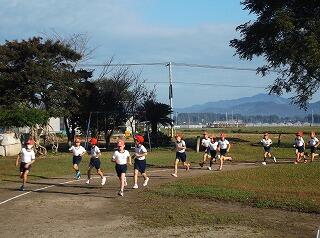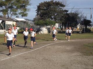 朝の寒さを吹き飛ばすかのように、76名の北小っ子が自分の調子に合わせながら元気に運動場を走り回りました。
