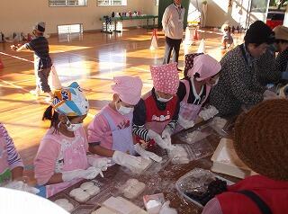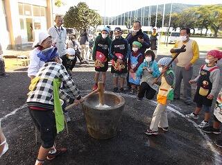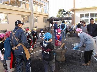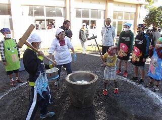毎年恒例で子どもたちが楽しみにしています「もちつき交流会」を行いました。