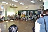 校長先生からは、昔の北方小学校の様子について、当時の写真をスクリーンに映しながら詳しく説明していただきました。学校のシンボルとなっているセンダンの大木がまだそれほど大きくない頃の写真(50年ほど前の写真)を見て児童や職員は北方小学校の長い歴史を実感し、この歴史ある北方小学校の歴史と伝統を次の世代に繋いでいくことの大切さなどを再確認できました。