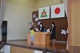 校長先生は、「思いやりいっぱい、学びいっぱい、たくましさいっぱい」を意識して全校児童が頑張ったことを振り返られました。また、「ひまわりの約束」の歌詞、「ひまわりのような まっすぐなその優しさを 温もりを全部 これからは僕も 届けてゆきたい ここにある幸せに 気づいたから」を引用され、思いやりをもって頑張ってほしいと話されました。
