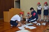 あいにくの天候で、感染症対策もしっかりと行ったうえで屋内の種目のみの実施となりました。全校児童を縦割りのグループに分け、6年生がリーダーとなって4種目をローテーションしながら取り組んでいきました。それぞれの種目の担当の先生方の説明をしっかりと聞き、みんな一生懸命に取り組んでいました。