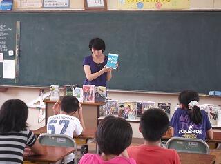 子どもたちは、自分の読みたい本を選び、集中してあさのさんの本を読んでいました。事前の説明があり、子どもたちは普段以上に意欲的でした。