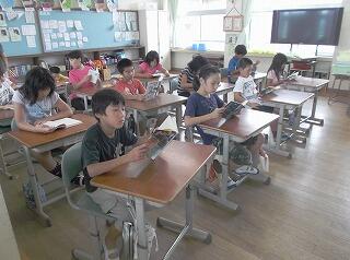1年生と2年生は水泳を、3年生は理科を、4年生は道徳、5年生は家庭科、6年生は外国語活動を保護者の方に参観していただきました。どの学級も元気いっぱいに、学習していました。