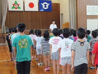 終業式では、3名の児童が「1学期がんばったことや夏休みの目標」について元気に発表しました。