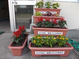 北方地区健康づくり推進員の皆様からきれいな花をたくさんプランターで