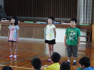 6月の発表集会(6・18実施)は、2年生の発表でした。2年生は、調和のとれた鍵盤ハーモニカの演奏や口をしっjかり開けた音読などを披露しました。2年生の「元気のよさ」と「きびきびとした動き」には感心させられました。
