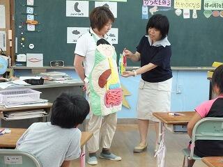 6月20日(木)に栄養教諭の先生が、「食習慣や健康状態がうんちに現れること」「うんちが食べ物と深く結びついていること」「元気な体になるためにはバランスのよい食事が必要なこと」を、2年生に絵やエプロンシアター、パネルなどを効果的に使って、分かりやすく説明し、子どもたちにしっかり考えさせました。