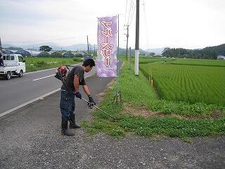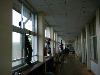 心配された天気も曇り空で、暑くもなく作業には最適な天気になりました。作業内容を「窓ふき担当」「旧草捨て場の埋め立て担当」「通学路等の草刈り担当「遊具補修の担当」の4つに分け、進めました。