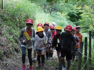 公園では、いきいき活動班(1年から6年生で構成している活動グループ)でウォークラリーをしました。みんなで歌を歌ったり、問題を解いたり、壁登りをしたりしながら、助け合っていました。