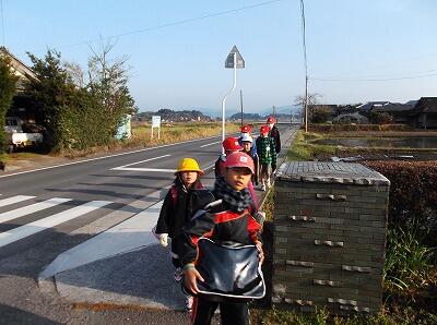 6年生が毎朝、集団登校の班長や副班長として、下級生を安全につれてきていましたが、来年度の準備のためにその役目を4・5年生にバトンパスしました。