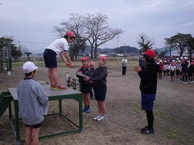 健康委員会の児童が開・閉会式の進行を務めました。はじめは、短なわとびでした。前・後とび、かけ足とび(前・後)、あやとび(前・後)、交差とび(前・後)、二重とび(前・後)の部があり、目標の回数を越えるように、みんな精一杯がんばっていました。