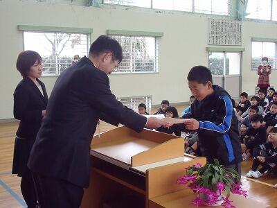 始業式では、3名(1年・3年・5年)の児童の今年の抱負に関する素晴らしい発表と市くしま学カルタ大会準優勝の表彰を行いました。