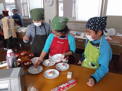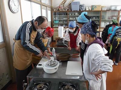 5年生が総合的な学習の時間の「おもち学習」で、餅を使って料理をつくりました。