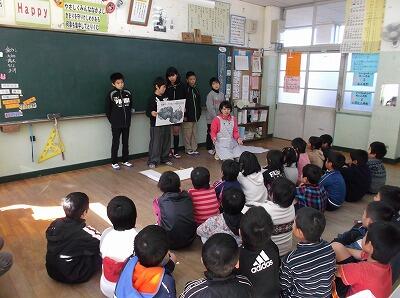【健康委員会の紙芝居の様子~3・4年への紹介】