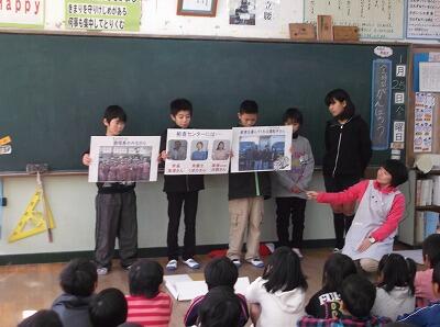 1/23(水)の朝の活動「発表集会」で、4年生が見事な発表をしました。