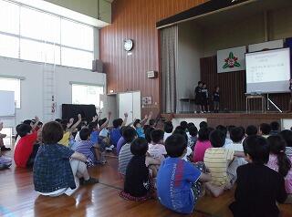 6月の発表集会(6・18実施)は、2年生の発表でした。2年生は、調和のとれた鍵盤ハーモニカの演奏や口をしっjかり開けた音読などを披露しました。2年生の「元気のよさ」と「きびきびとした動き」には感心させられました。
