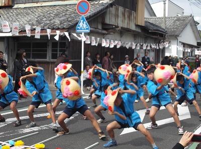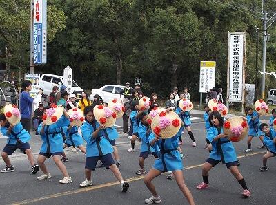 11/3(土)の市秋祭りパレードで北小っ子「花笠隊」が素晴らしい花笠を披露