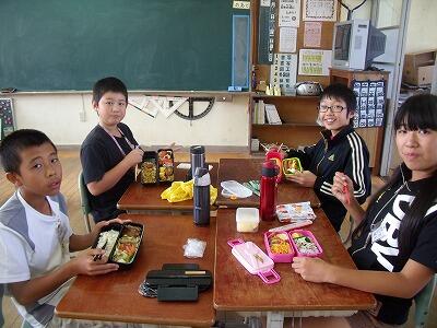 本校では、遠足などの学校行事の日を、「お弁当の日」としています。①完璧コース(自分だけで作る)、②家族で弁当コース(家族と一緒に作る)、③おにぎりコース(おにぎりを自分で作り、作っていただいたおかずを弁当に詰める)、④もりつけコース(作っていただいた料理を弁当に詰める)、⑤感謝コース(作っていただいた弁当を全部食べ、作ってくださった方に感謝の言葉を伝える)の5つのコースから1つを子ども達が選んで、取り組んでいます。