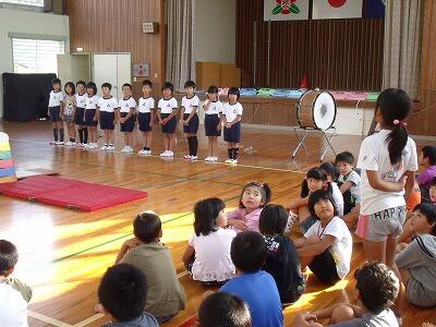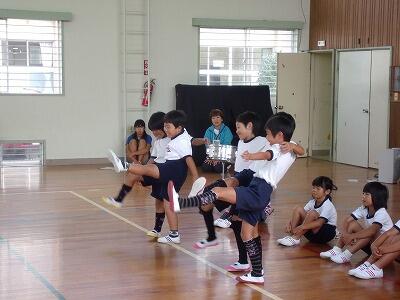 まず、息のあった鍵盤ハーモニカの演奏に始まり、元気いっぱいの詩の朗読、楽器を使いながらの大きな身体表現と続き、最後に、跳び箱の技を披露しました。1年生一人一人のはきはきとした態度や歯切れのよい技に他の学年の子ども達も感心していました。