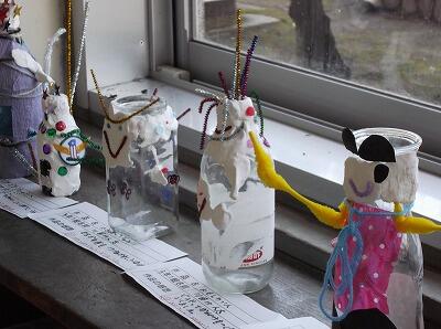 教室や廊下、階段の掲示板や台に、いつも子ども達の作品を展示しています。すべての作品に子ども達の思いや願い、アイデアがいっぱい込められています。