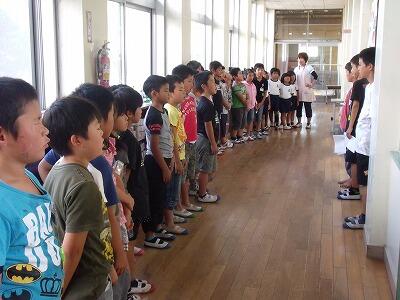 今月の学校生活目標は「目を大切にしよう」です。今月は、各学級で「目の体操」や姿勢指導を行っていますが、特に目の愛護デーの日は、健康委員会の児童の運営で、廊下に並んで一斉に目の体操や遠くを見る運動を行いました。